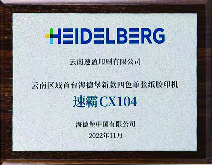 云南速盈印刷采用先進的進口印刷設(shè)備,從德國進口的海德堡速霸CX104。